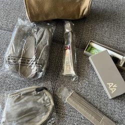 VTG American Airlines Amenity Kit Tan Suede 6pc Toiletry Bag Set Business Class$5Queen Creek, AZ