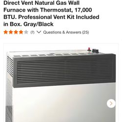 Direct Vent Natural Gas Wall Furnace with Thermostat, 17,000 BTU. Professional Vent Kit Included in Box. Gray/Black$319Phoenix, AZ