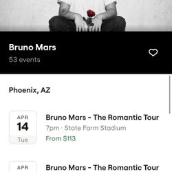 Bruno Mars Tickets (2)$575Scottsdale, AZ