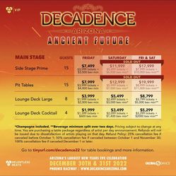 Decadence NYE Music Festival VIP Tables$0Tempe, AZ