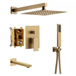 3-Spray Patterns Square 10 in. Wall Mount Dual Shower Heads 2.5 GPM with Tub Faucet in Brushed Gold$130Phoenix, AZ