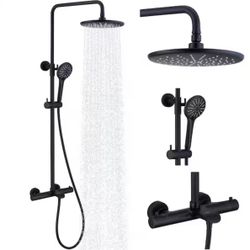 5-Spray Patterns 9.5 in. Thermostatic Shower Faucet Wall Mount Dual Shower Heads and Tub Faucet in Matte Black$160Phoenix, AZ