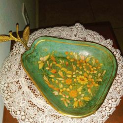VINTAGE COPPER METAL ENAMELED ENAMEL FLORAL FLOWER FRUIT PEAR SHAPED DISH PLATE ACCENT TABLE DECOR DISPLAY$25San Tan Valley, AZ