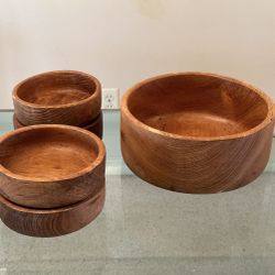 Mid Century Modern Vintage Scandinavian Danish Style Solid Teak Wood Set Large 10” Cylindrical Salad Fruit Bowl, 4 Small Bowls$75Tempe, AZ