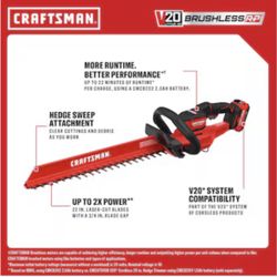 CRAFTSMAN V20 Brushless RP 20-volt max 22-in Battery Hedge Trimmer 2 Ah Battery Included$130Scottsdale, AZ