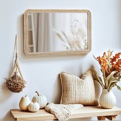 Only $65: 24x36 Large Wall Mirror, Wood Frame with Braided Seagrass and Wooden Bead$65Mesa, AZ