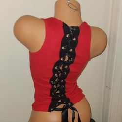 LIKE NEW RED BLACK CORSET LACE UP FOLTER TANK TOP SHIRT SIZE MEDIUM M$25Queen Creek, AZ