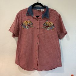 Bobbie Brooks Women's 100% Cotton Red Checked Nautical Embroidered Shirt Sz XL$15Gilbert, AZ
