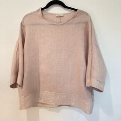 BELLAMBRA Women Medium Linen Top Tunic Pink Sequins Made in Italy$20Gilbert, AZ