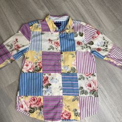 Vintage Floral Stripe Patchwork Button Down Shirt HUNT CLUB Size 12 EXC RL Style$29Gilbert, AZ