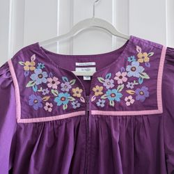 Go Softly Patio Dress LARGE Full Zip W/pockets Purple Embroidered EXC $30Gilbert, AZ