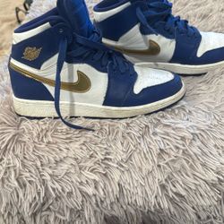 Blue and Gold Nike Air Jordan 1 Retro (Gold Medal) Youth Size 5.5/Women’s Size 7$120Scottsdale, AZ