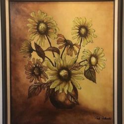 Original Very Large signed Paul Richards Mid Century Modern Oil Painting Sunflowers$395Tempe, AZ