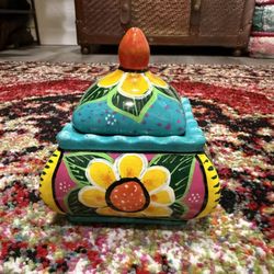 MEXICAN TALAVERA STYLE POTTERY Colorful FLORAL Square TRINKET DISH ~5" H $10Gilbert, AZ