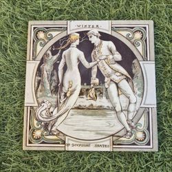 Antique 1880s English Minton Tile Four Seasons Winter Skates 6 Inch RARE$195Tempe, AZ