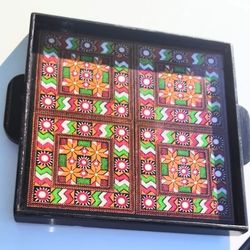 Hand painted Vintage Ethnic Design Tray On Wood Glass Cover Unique!$55Mesa, AZ