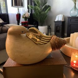 Vintage hand-carved wooden bird sculpture with brass wings created by an artist named Dan Bowden. $35Gilbert, AZ