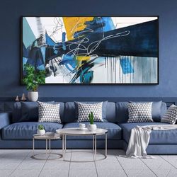 Modern Abstract Canvas Wall Art - Blue and white Framed Wall Decor 20 x 40 in$60Guadalupe, AZ