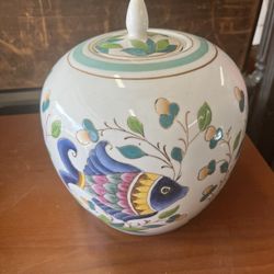 Vintage Ceramic Ginger Jar With Hand Painted Fish Motif 10" 1950's$35Scottsdale, AZ