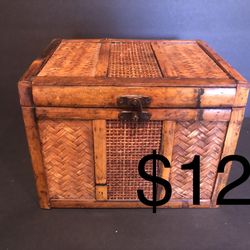 Great wooden and rattan decorator’s box. 7” x 7” x 10”. Only $12.$12Phoenix, AZ