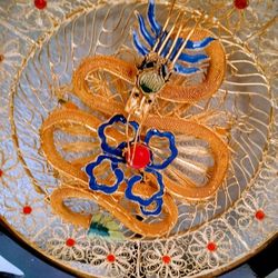 Chinese gold tone filigree enamel dragon plate with stand$69Mesa, AZ