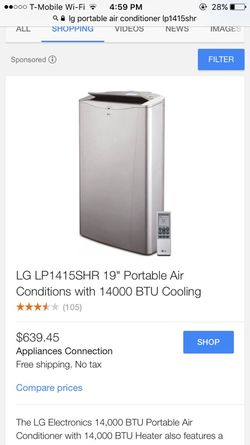 Brand New LG Electronics 8,000 BTU (5,500 BTU,DOE) Portable Air Conditioner, 115-Volt w/ Dehumidifier Function and LCD Remote in White$200Mesa, AZ