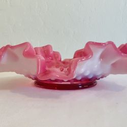 Fenton Cranberry Pink Opalescent Hobnail Ruffled Crimped Candy Trinket Bowl Dish Nappy$45Chandler, AZ