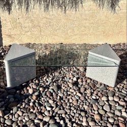 Postmodern Rare Granite Laminate Triangular Pedestals With Rectangular Glass Coffee Table.$750Phoenix, AZ