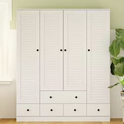 70 in. H x 19 in. D White Wood 59 in. W 4 Shutter Doors Big Armoires Wardwore with 6-Drawers, Hanging Rod$310Phoenix, AZ