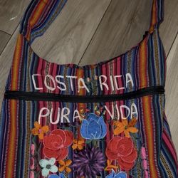 handmade, colorful, woven crossbody bag featuring floral embroidery and the text "COSTA RICA PURA VIDA". $15Chandler, AZ