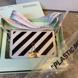 Saffiano Striped Baby Diag Binder Clip Bag White Black$400Chandler, AZ