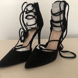 High heels platforms shoes tie black stripper size 7$30Scottsdale, AZ
