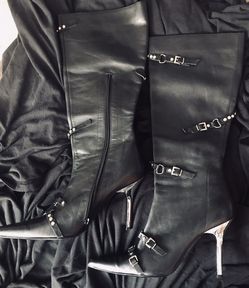 Steve Madden 9 Black Leather Silver Chrome Stiletto Heel Tall Boots Beautiful$50Tempe, AZ