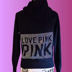 Victoria's Secret Love Pink Black Rhinestone Y2k Small Hoodie OBO$60Chandler, AZ