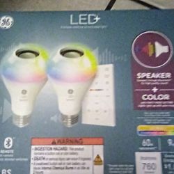 BRAND NEW NEVER OPENED GE LED+ Speaker LED Light Bulb Color Changing 60 Watt A21 Bulbs Medium Base 2pk