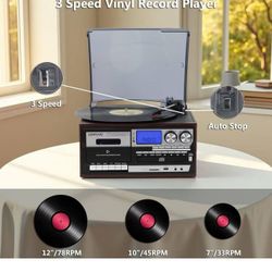 All in One Vintage 3 Speed Vinyl Record Player with Built-in Speakers,Bluetooth in/Out Turntable,CD Player/Cassette/USB/TF Card,AUX in,FM/AM Radio,RCA$80Tempe, AZ