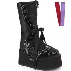 10/01 Demonia Damned 120 Platform Boots Interchangeable Ribbon Laces Patent Chain$70Mesa, AZ