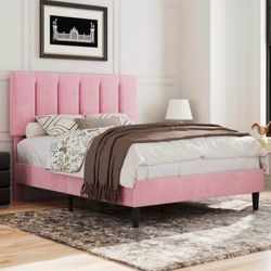 VECELO Queen Size Bed Frame with Upholstered Headboard, Heavy-Duty Platform Bedframe with Strong Wooden Slats Support, No Boxing Spring Needed, Cherry$120Chandler, AZ