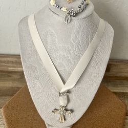 Vintage Cream Ribbon Cross Pendant, Bracelet & Ring$12Gilbert, AZ