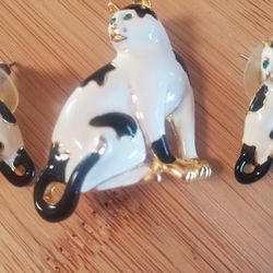 Vintage Black And White Enamel Cat Pierced Earrings And Brooch Pin With Green Rhinestone Eyes$20Queen Creek, AZ