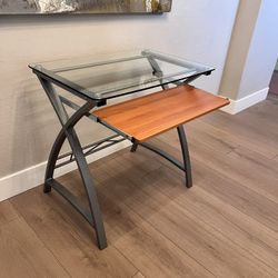 32” Wide Tempered Glass Top Desk With Wood Keyboard Tray and Silver Metal Frame$50Gilbert, AZ