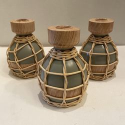 Bo Ho wicker wrapped ceramic & wood candle holders. Set of 3. Farmhouse/ cottage decor.$10Scottsdale, AZ