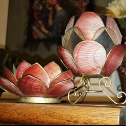 X2 VINTAGE BURGUNDY ROSE GOLD FLORAL FLOWER LOTUS TEALIGHT VOTIVE CANDLE HOLDER ACCENT TABLE DECOR DISPLAY KNICKKNACKS$25San Tan Valley, AZ