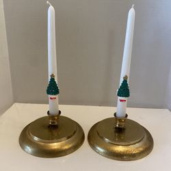 Vintage Brass Metal Taper candle holders. Rustic. Includes 2 Christmas Tree Candles. 6x3. Retro / Farmhouse/ Cottage. $20Scottsdale, AZ