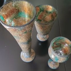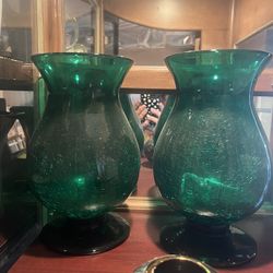 2 11" GREEN CRACKLE GLASS CANDLE HOLDER VASE$30Scottsdale, AZ