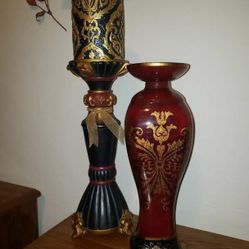 X2 HIGH QUALITY GOLD BURGUNDY BLACK DAMASK ORNATE TUSCANY CANDLE PILLER HOLDER DISPLAY ACCENT TABLE DECOR$40San Tan Valley, AZ
