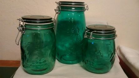 Set of 3 beautiful blue-green glass wire latch Canister Set$20Mesa, AZ