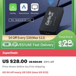 CarlinKit USB Wireless CarPlay Dongle Wired Android Auto AI Box Mirrorlink Car Multimedia Player Bluetooth Auto Connect $40Tempe, AZ