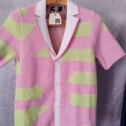 SEROYA Women’s M Pink Yellow Knit Blazer Style Cardigan Sweater NWT SER.O.YA