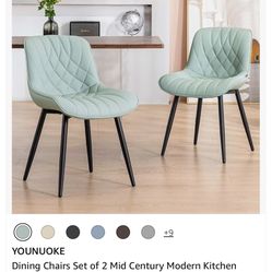YOUNUOKE Dining Chairs Set of 2 Mid Century Modern Kitchen Chair Comfortable Upholstered Faux Leather Dinner Chairs for Kitchen Dining Room, Mint$150Mesa, AZ